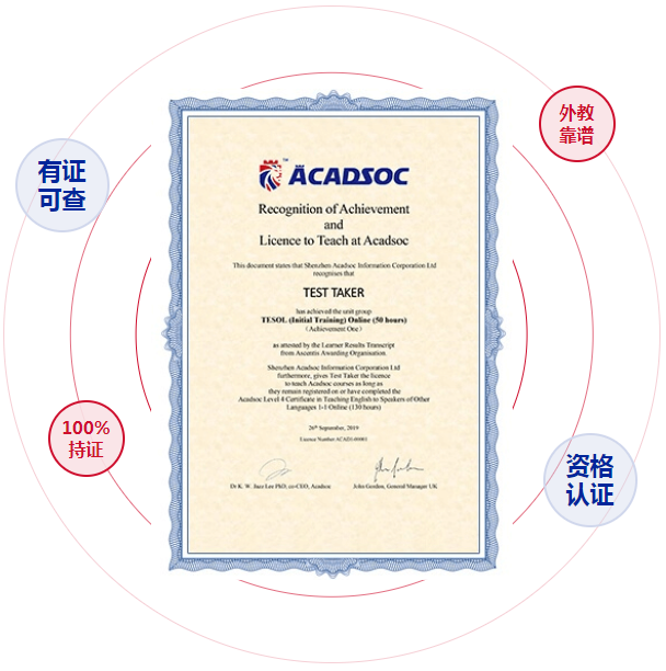 TESOL是国际英语教师资格证书和英语教学行业职业资格的权威国际证明。目前,阿卡索已上线外教资质公示平台,随时随地可查外教TESOL证。