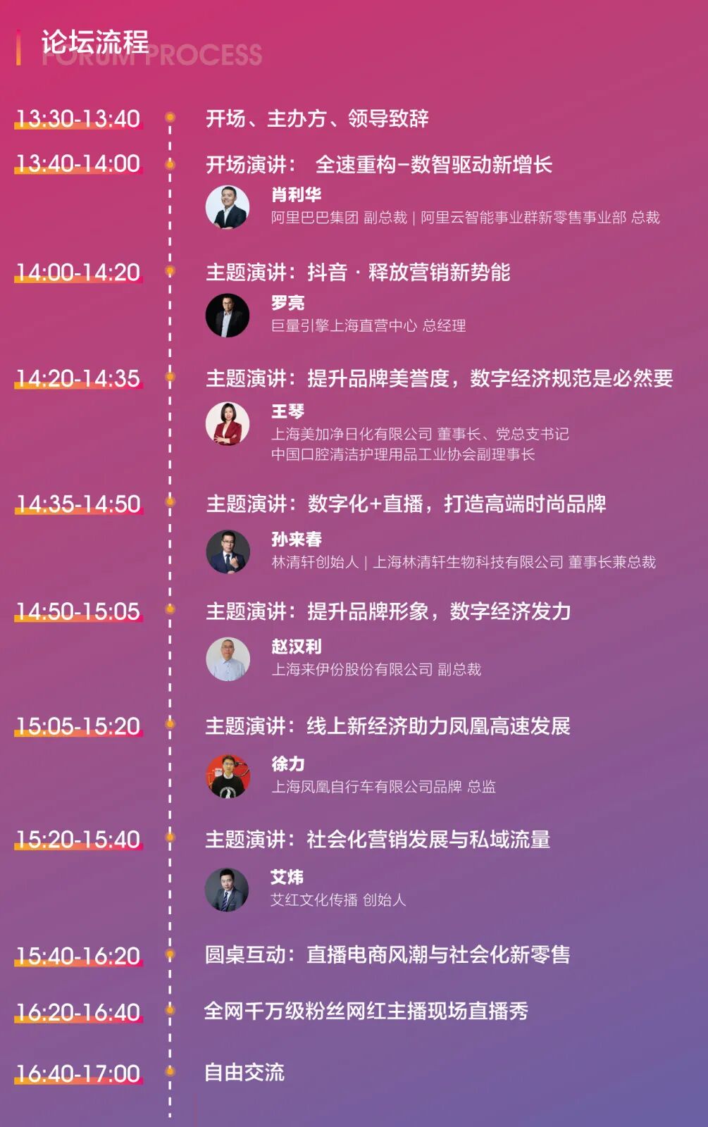 阿里巴巴集团、巨量引擎等互联网平台大咖重磅分享,明星品牌企业高层解读新零售线上经济与实践,头部MCN机构创始人携全网千万级粉丝网红主播解构品牌私域流量与社会化营销布局,尚博荟助力企业布局“线上经济”——走进直播现场等四大亮点,令本届论坛看点满满,备受期待。
