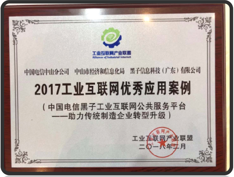 同年获评由国家工信部指导的中国工业互联网产业联盟评选并颁发的“2017工业互联网优秀应用案例”(2017年全国仅评选出17例)。