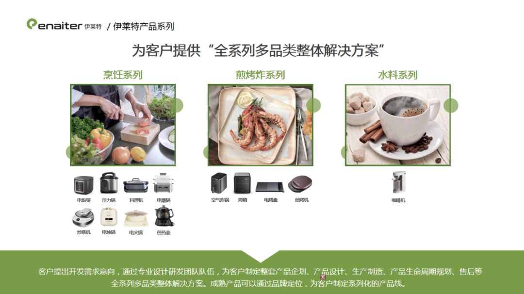 伊莱特电器成立于2006年,聚焦各类智能小家电的研发和创新,是一家拥有庞大设计和研发管理队伍、生产工艺先进、产业链配套设施完善,85%的零部件自制能力,为客户提供全系列、多品类、套系化整体解决方案的家电生产和销售企业。
