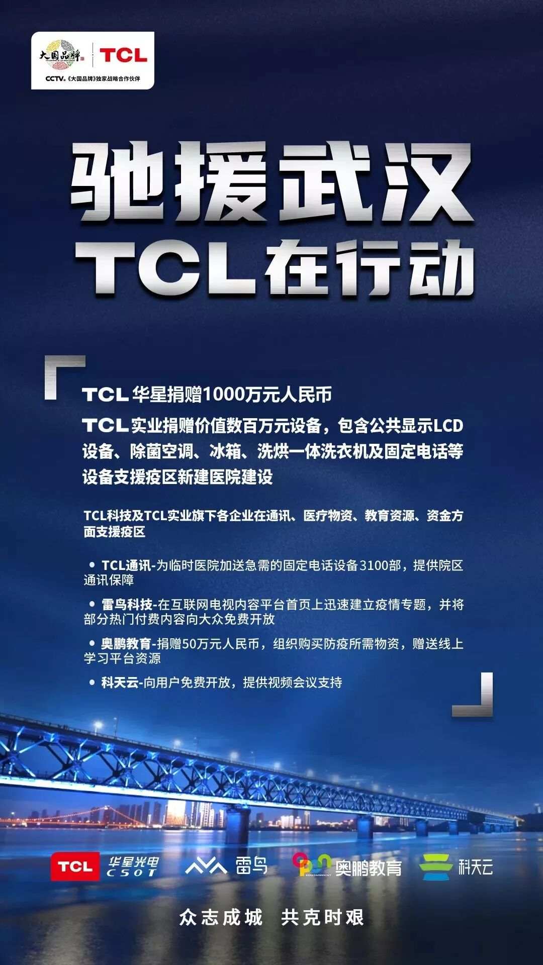 TCL拥有包括武汉华星光电、TCL空调武汉生产基地等在内的15家在汉企业,武汉疫情一直牵动着TCL人的心,我们将持续关注疫情,为武汉疫情防控工作提供更多支持。