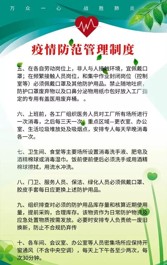 当前,新型冠状病毒感染的肺炎疫情严重威胁人民群众身体健康和生命安全,特别是节后工业企业陆续复工复产,容易形成人员集聚,疫情防控形势紧迫,责任重大。企业必须做好节后复工复产疫情防控工作。