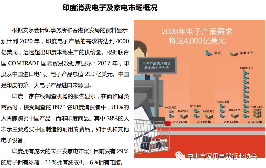 印度作为人口第二大国、“金砖国家”,与中国的合作领域不断扩展,交流层次不断加深,是广东企业“走出去”重点开拓的市场之一。随着近年来印度家居、家电、消费电子的零售正规渠道慢慢形成,印度家居、家电、消费电子市场将成为全球增长最快的市场之一。