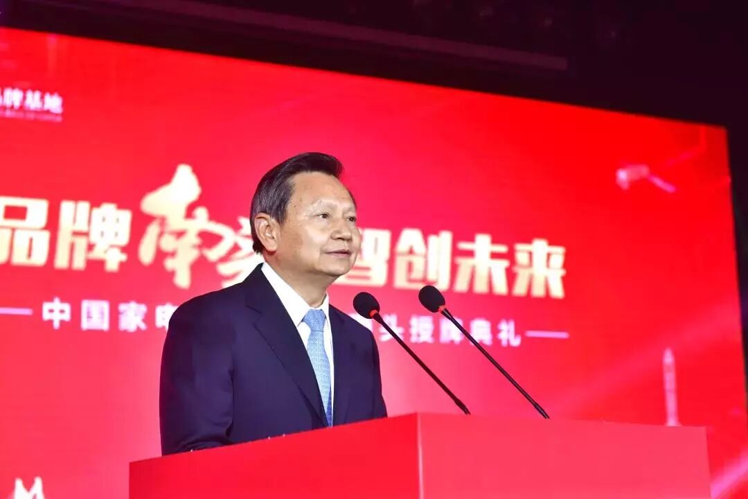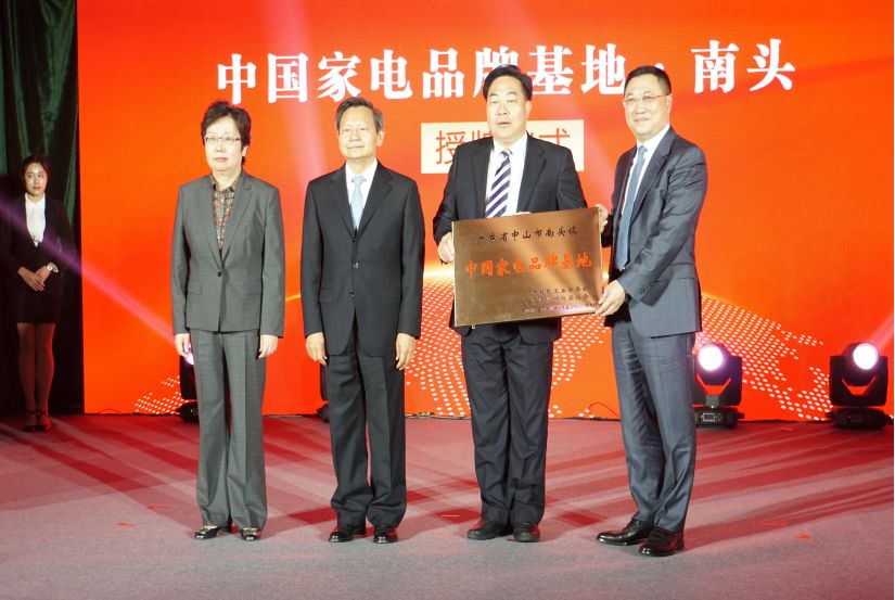 中国轻工业联合会会长张崇和先生、中国家用电器协会理事长姜风女士为南头镇颁发“中国家电品牌基地”牌匾,南头镇党委书记吴坤科,镇党委副书记、镇长黄泽培上台接受授牌。