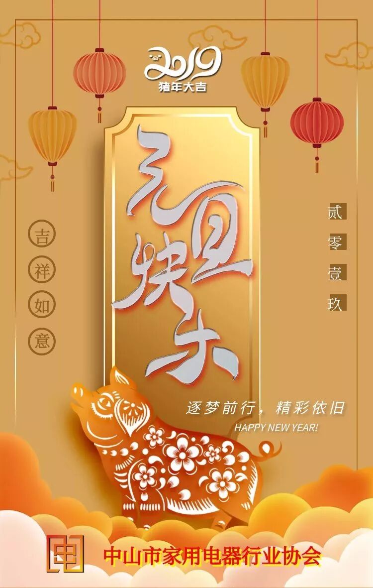 当日历翻过最后一页,当秒针滑过数字12,中山市家用电器行业协会与您再次迈入新的一年。籍此辞旧迎新之际,会长蔡拾贰先生携全体理事向关注和支持协会的各位领导、各会员企业及社会各界人士致以最衷心的感谢和最诚挚的问候。祝愿大家新年快乐!身体健康!诸事顺利!