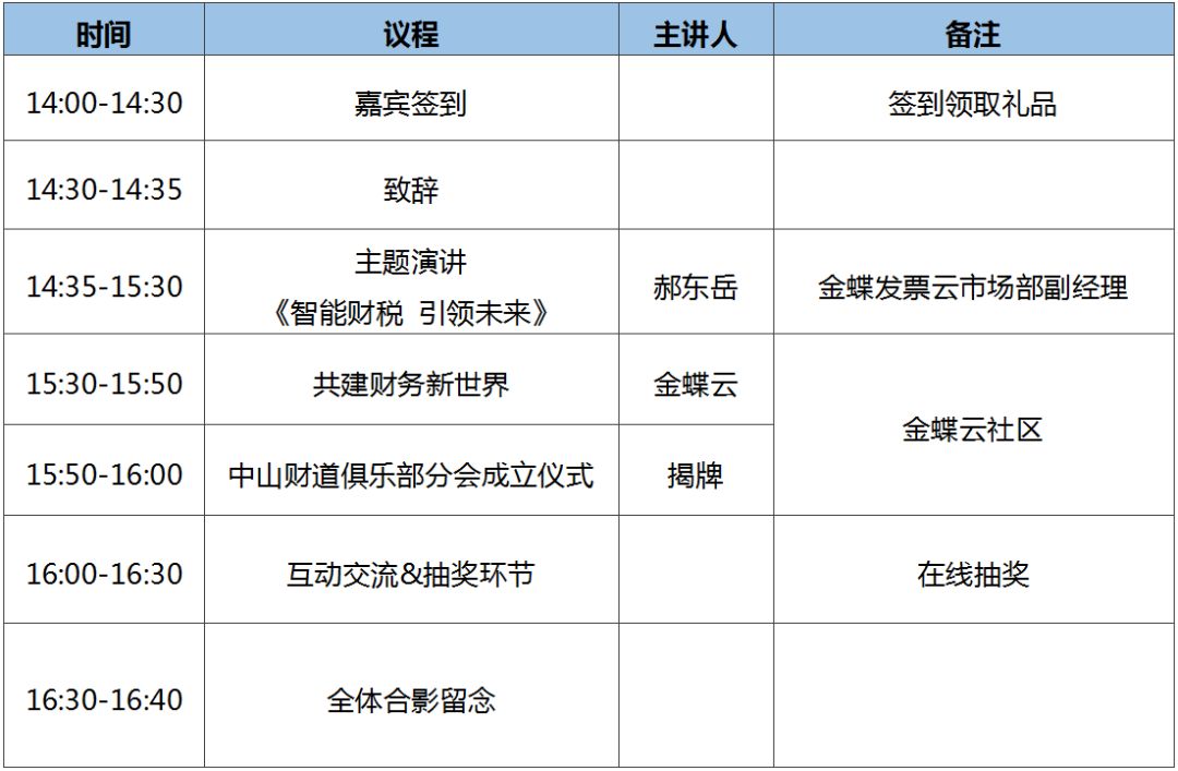 本次活动免费。请有兴趣参加的会员企业于10月22日前填写《报名回执》后回复至协会秘书处。或关注“中山市家用电器行业协会”公众号后直接回复“主题+企业名称+姓名+职务+手机”(如:“智能财税 引领未来——助力企业财税一体化”讲座+赵XX+经理+139xxxx)