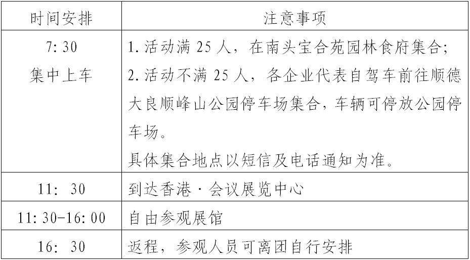请有兴趣参加的企业于9月25日16:00前填妥《报名回执》后回复至协会秘书处。或关注“中山市家用电器行业协会”公众号后直接回复“主题+企业名称+姓名+职务+手机”(如:“参观香港秋季电子产品展览会”+中山市XX电器有限公司+赵XX+经理+139xxxx)