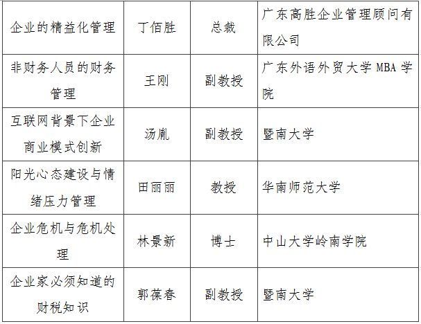 培训班共举办两期,每期招生50人,每期培训10天,面向全省家族企业接班人或二代或优秀创业者(其中在粤台商15名)招生。