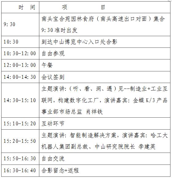本次活动免费(含午餐),请有意参加的企业填写好《报名回执》,并于6月26日下午16:00前回复至秘书处。或关注“中山市家用电器行业协会”公众号后直接回复“主题+企业名称+姓名+职务+手机”(如:“第十八届中国(中山)机床模具及塑胶机械展览会”+中山市XX电器有限公司+赵XX+经理+139xxxx)