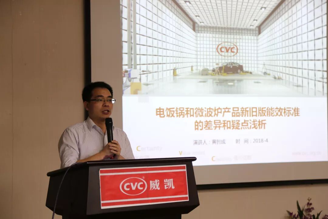 中国能效标识管理中心资深专家张超然、王杉分别就国家能效政策与标准化法、能效实施规则做介绍,CVC威凯资深专家也围绕电饭锅、微波炉以及交流换气扇新旧版本标准差异和测试方法、以及样品测试及备案流程等问题进行了详细的介绍。