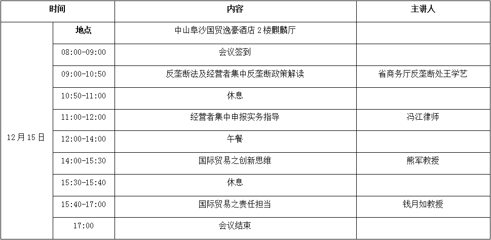 (一)请有兴趣参加的企业于2017年12月12日16:00前填妥《报名回执》后回复至协会秘书处。或关注“中山市家用电器行业协会”公众号后直接回复“主题+企业名称+姓名+职务+手机”(如:“反垄断法与国际贸易实务创新”知识培训+中山市XX电器有限公司+赵XX+经理+139xxxx)