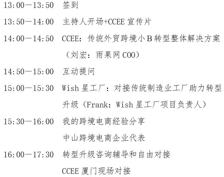 为助推传统外贸跨境转型升级,寻求传统外贸跨境小B转型的整体解决方案,我会将联合中山市电子商务协会、中山市对外经济贸易企业协会、中山市纺织服装行业协会等单位共同举办“CCEE(雨果网跨境电商选品大会)走入产业带对接会——中山站”。