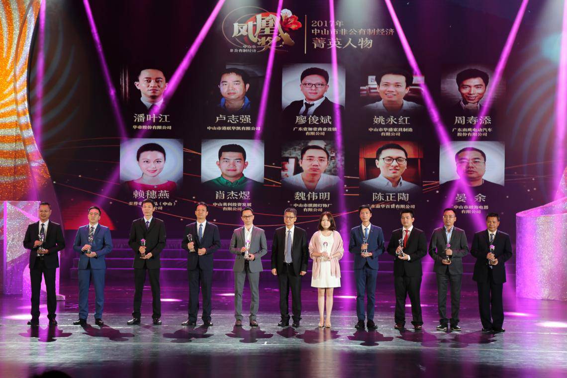 在2017 年中山市非公有制经济凤凰奖评选活动中,华帝股份有限公司董事长潘叶江等 10 位年轻的民营企业家,被评选为2017 年中山市非公有制经济凤凰奖“菁英人物”。这些年轻人正带领团队推动企业持续发展、不断超越、勇立时代潮头。