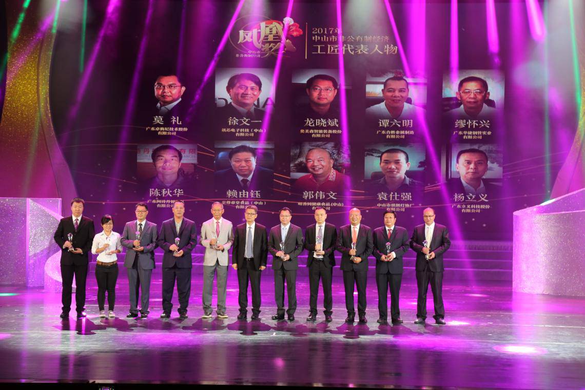在2017 年中山市非公经济凤凰奖评选活动中,莫礼等10 位民营企业家,被评选为2017 年中山市非公经济凤凰奖“工匠代表人物”。他们都是中山非公有制经济具有工匠精神的杰出代表。