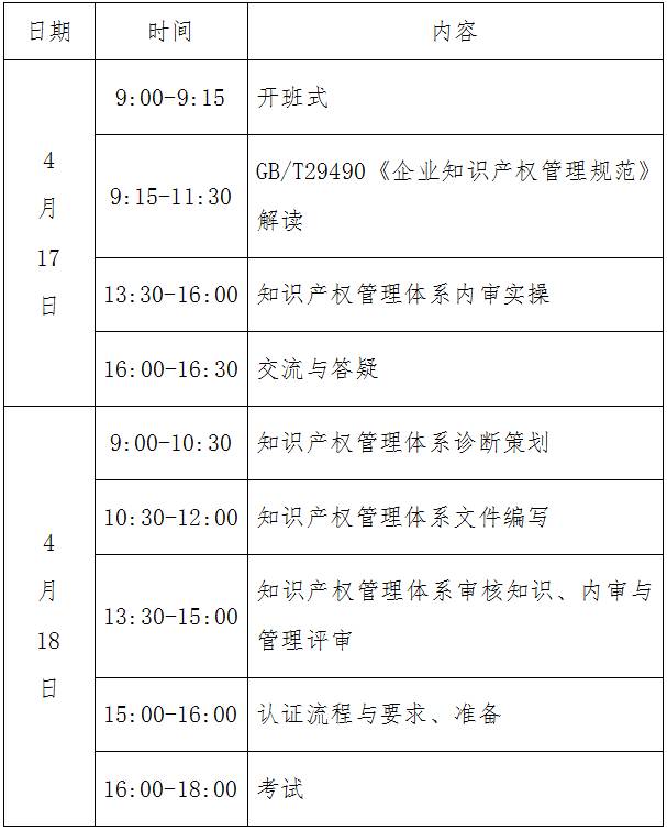 贯标企业知识产权负责人和内审员(每家限报2人)