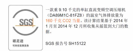 根据GMCC邀请第三方检测机构所做的碳排放评估,一台变频空调压缩机一年的碳排放量是160 Kg CO₂e,若以10年的生命周期来计算,一台变频空调压缩机将累计产生1600 Kg CO₂e,这意味着需要种植18颗树,才能抵消这台压缩机所产生的碳排放。单台变频压缩机的碳排放量处于较低水平,但若以动辄数千万台的压缩机出口来计算,也是一个较为巨大的数字。