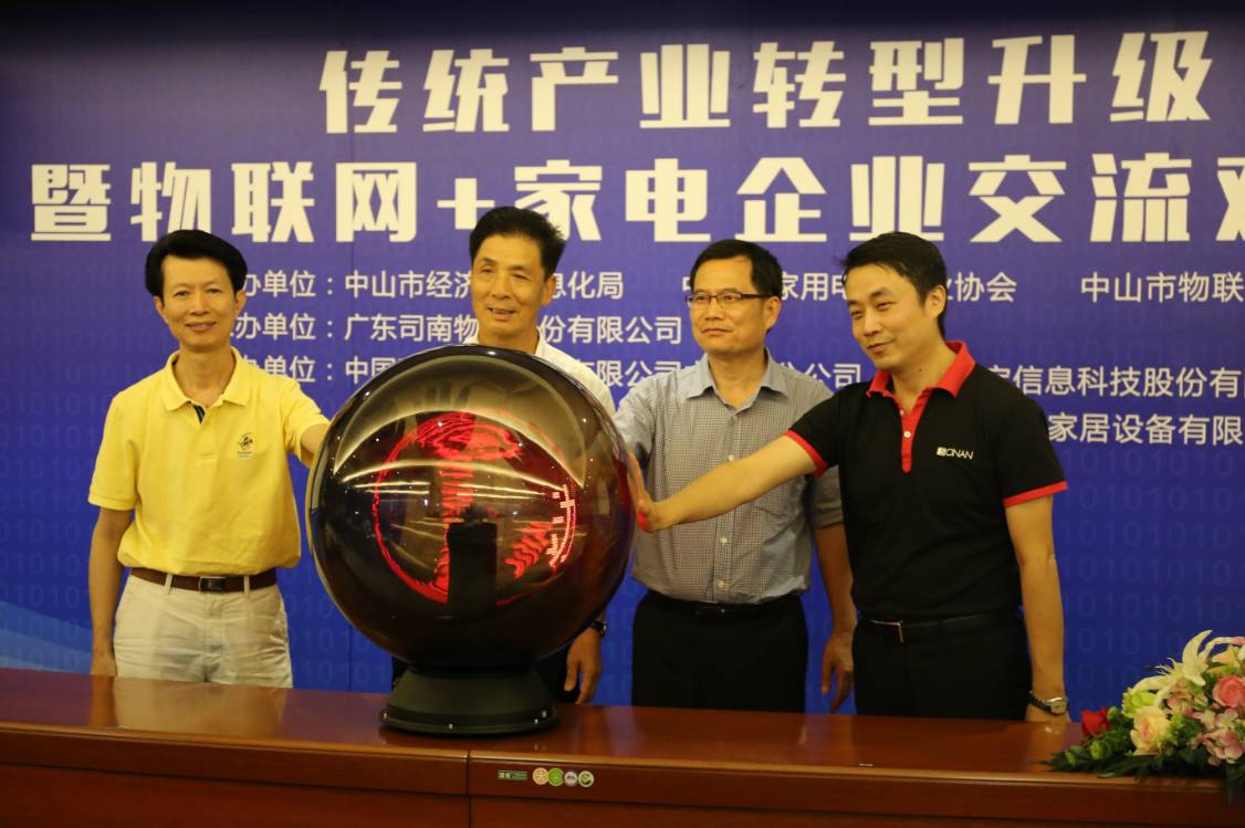 会上还举行了简单而隆重的“物联网+家电企业交流对接活动启动仪式”。现场,汤荣添、蔡拾贰、张力,以及中山市经济和信息化局产业组织科科长邹志荣共同点亮启动球,标志着“传统产业转型升级暨物联网+家电企业交流对接”活动的正式启动。