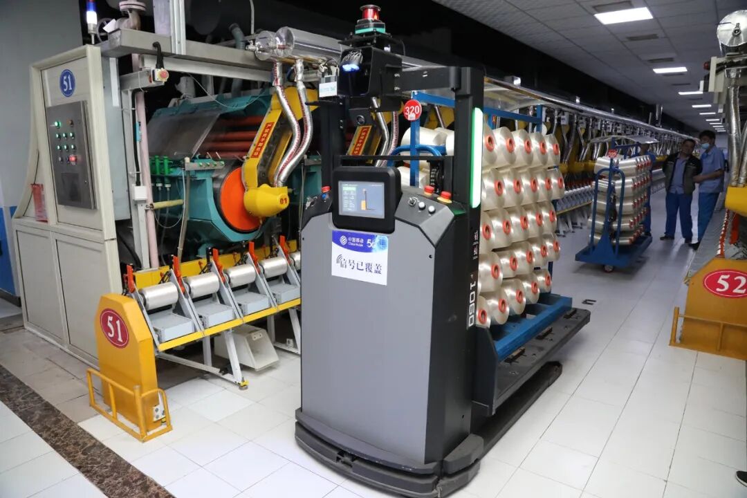 长丝5G+AGV搬运机器人正在工作中。