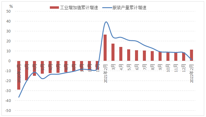 图1 2022年1-2月服装行业生产增速情况