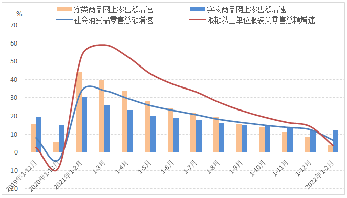 图2 2022年1-2月国内市场服装销售增速情况