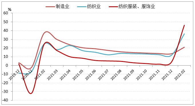 根据国家统计局数据,2022年1-2月,我国服装行业固定资产投资完成额同比增长46.2%,增速比2021年全年加快42.1个百分点,比2021年两年平均增速加快62个百分点,高于纺织业和制造业整体水平9.9和25.3个百分点。