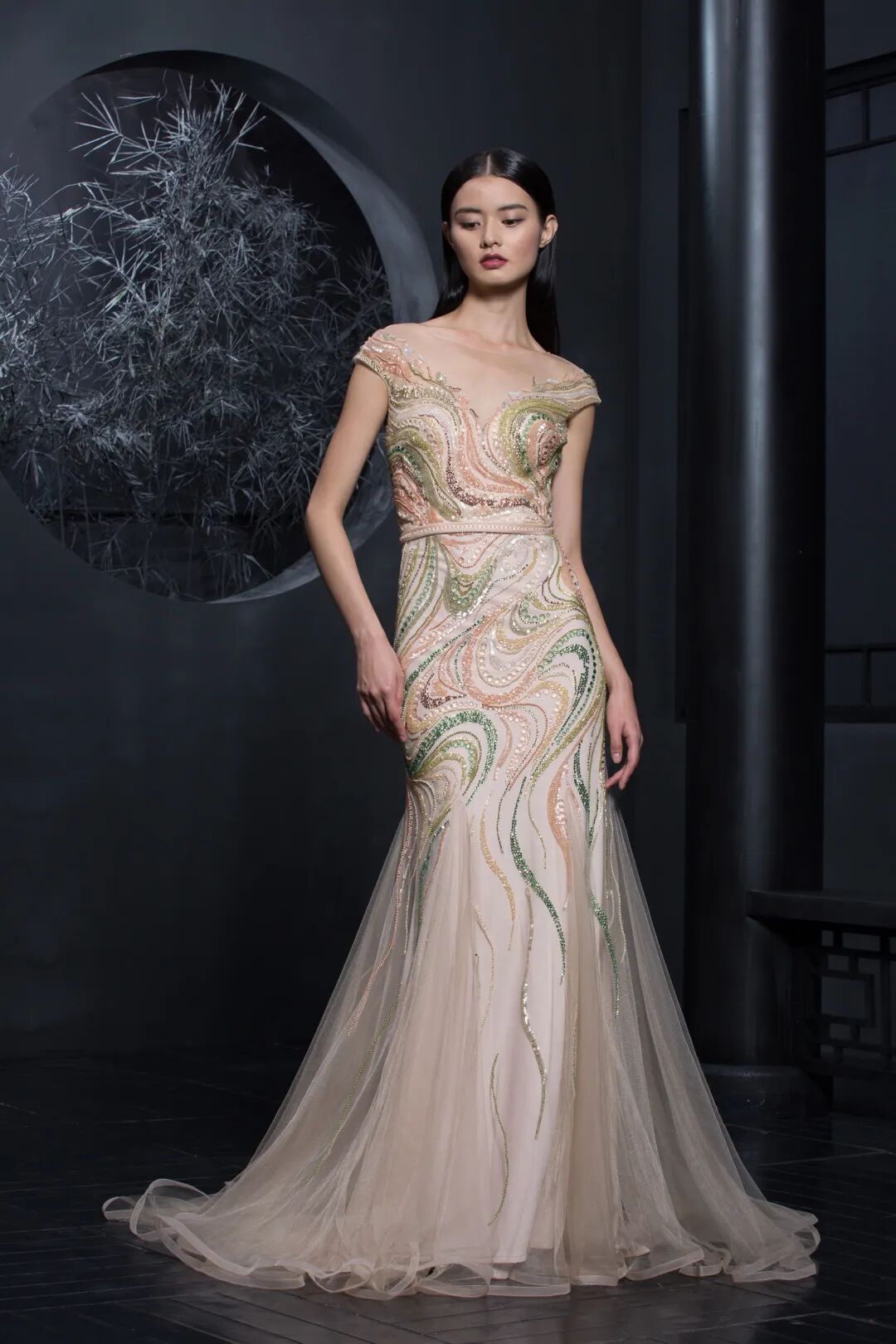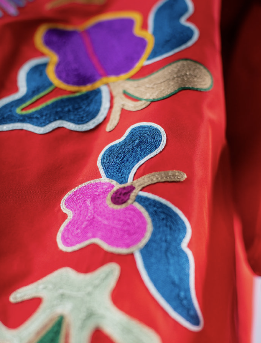 佘可燕女士便是其中之一,她巧妙的将潮绣技艺融合在现代服饰设计上,不断吸取潮绣的各种精致针法和技法,精益求精,将传统工艺结合西方时尚的设计理念与剪裁,巧妙的将中国元素贯穿在服饰上。