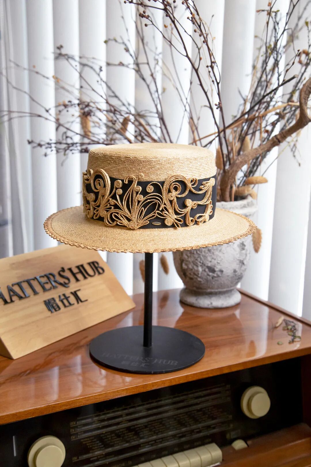 这两款精美的帽饰便是匠心工艺打造出来的艺术品,中式盘口帽采用纯天然超细麦辫,手工编织完成一顶帽子耗时150到180个小时,且需要至少40余年编织经验才能编织出这种极细麦辫,现收藏于富美帽饰博物馆之中。另外一款天然超细麦秆和菠萝纹麦秆结合的帽饰,同样为纯手工编织而成,每顶耗时72到120小时。