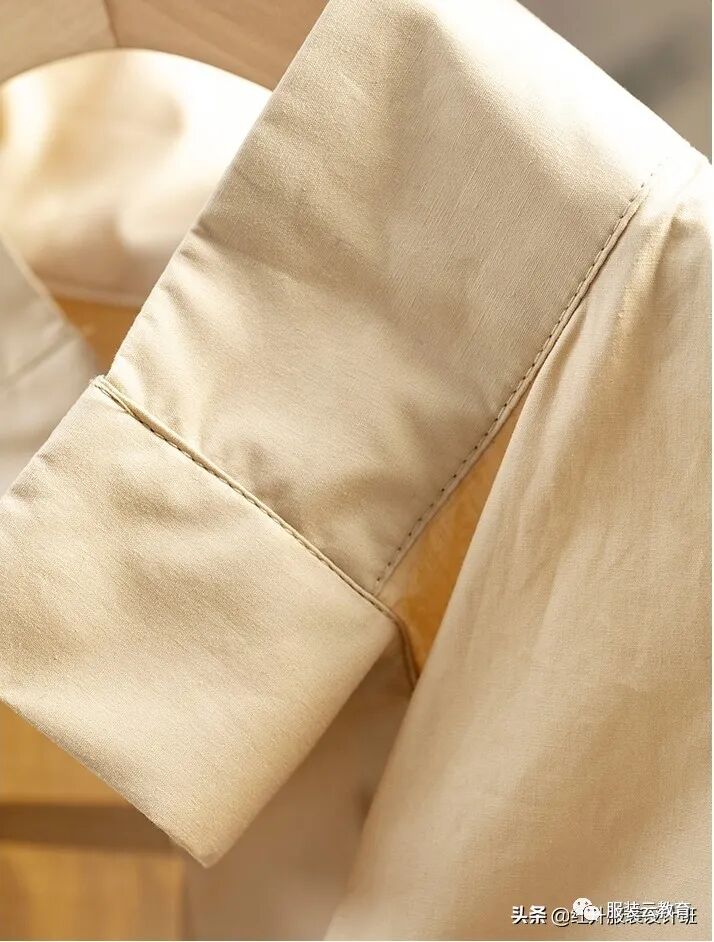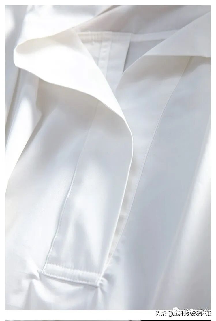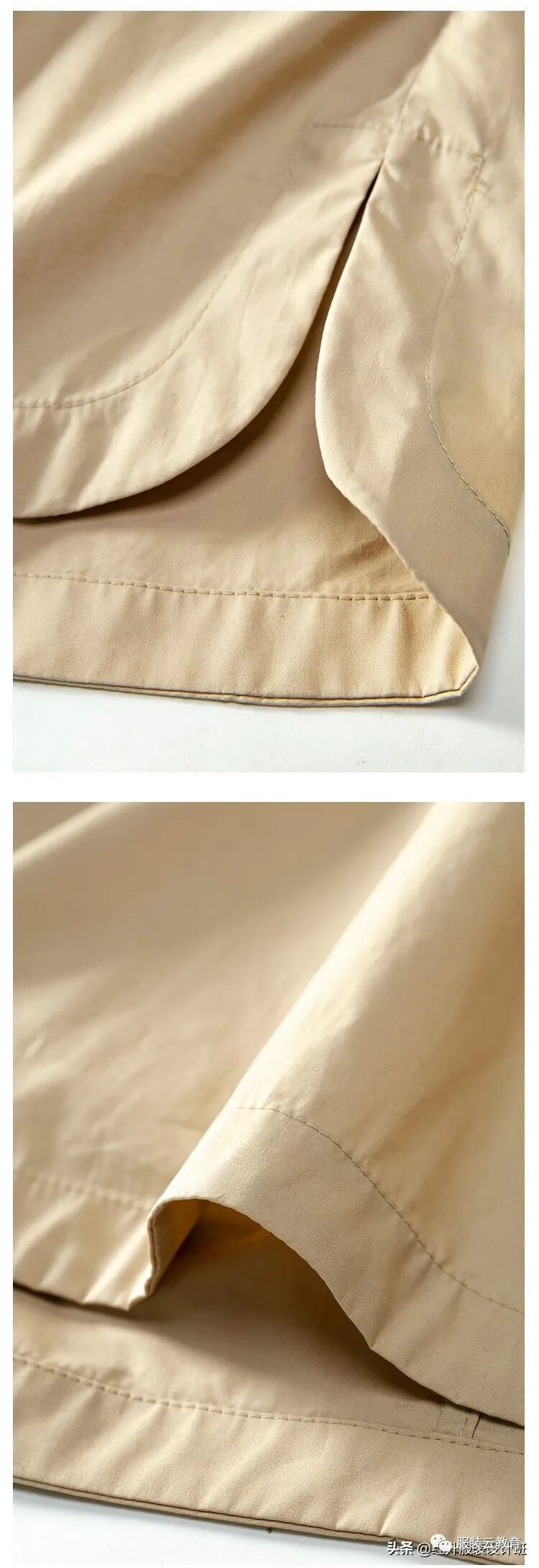 下摆的侧缝圆角位置以及底边可以贴布,贴布可以卷折后车辑1毫米的明线,这样看不出缝头来。