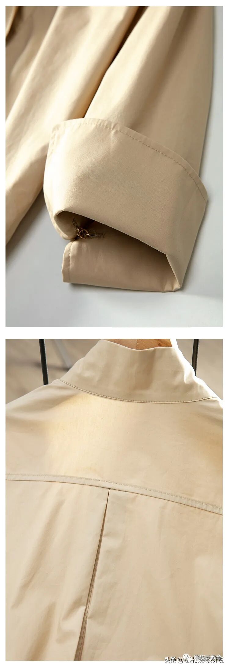 袖子的扣眼部位也可以用链式纽扣,链式袖扣来装饰一番,后中育克下面做一个8厘米的阴裥。
