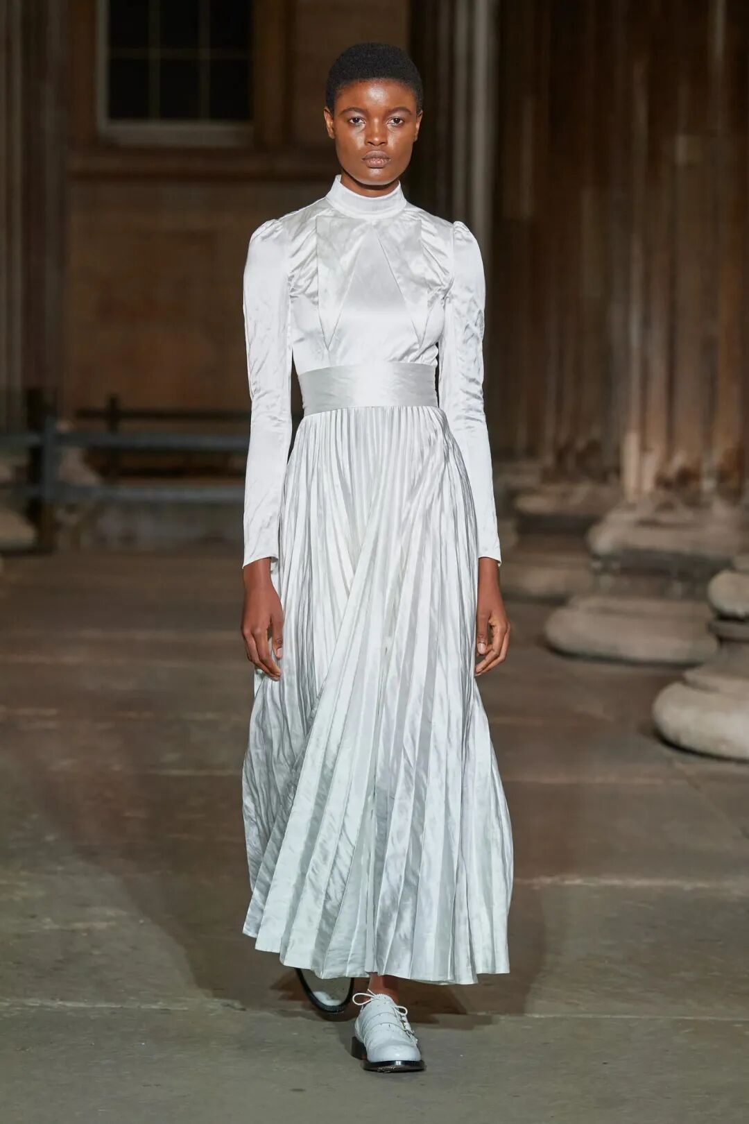 百褶裙以精致的做工成为了几个季节的主角,由于使用了轻盈流畅的面料,使服装变得更加轻盈,从而显得更加别致,从而呈现出一种特殊的“蓬松”形象。这件精致的服装在短时间内引起了媒体和时尚者的关注,以至于它已成为现代衣柜的必备单品之一。2022 春夏时装秀继续提供新版型的百褶裙:烧花、图案以及金属丝面料加工。