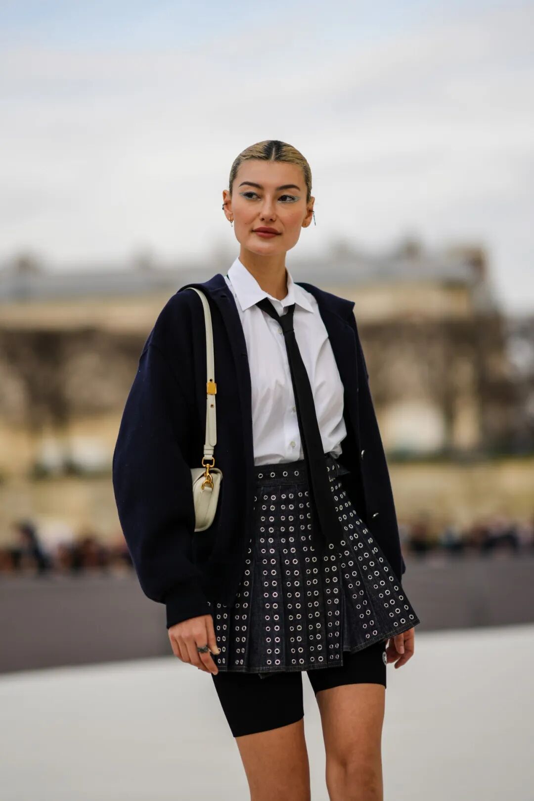 最新的趋势是网球裙被重新诠释或改造,成为街头风格的焦点:从Thom Browne的Dua Lipa西装,到带有或不带金属铆钉的百褶太阳裙,带有摇滚朋克的味道。