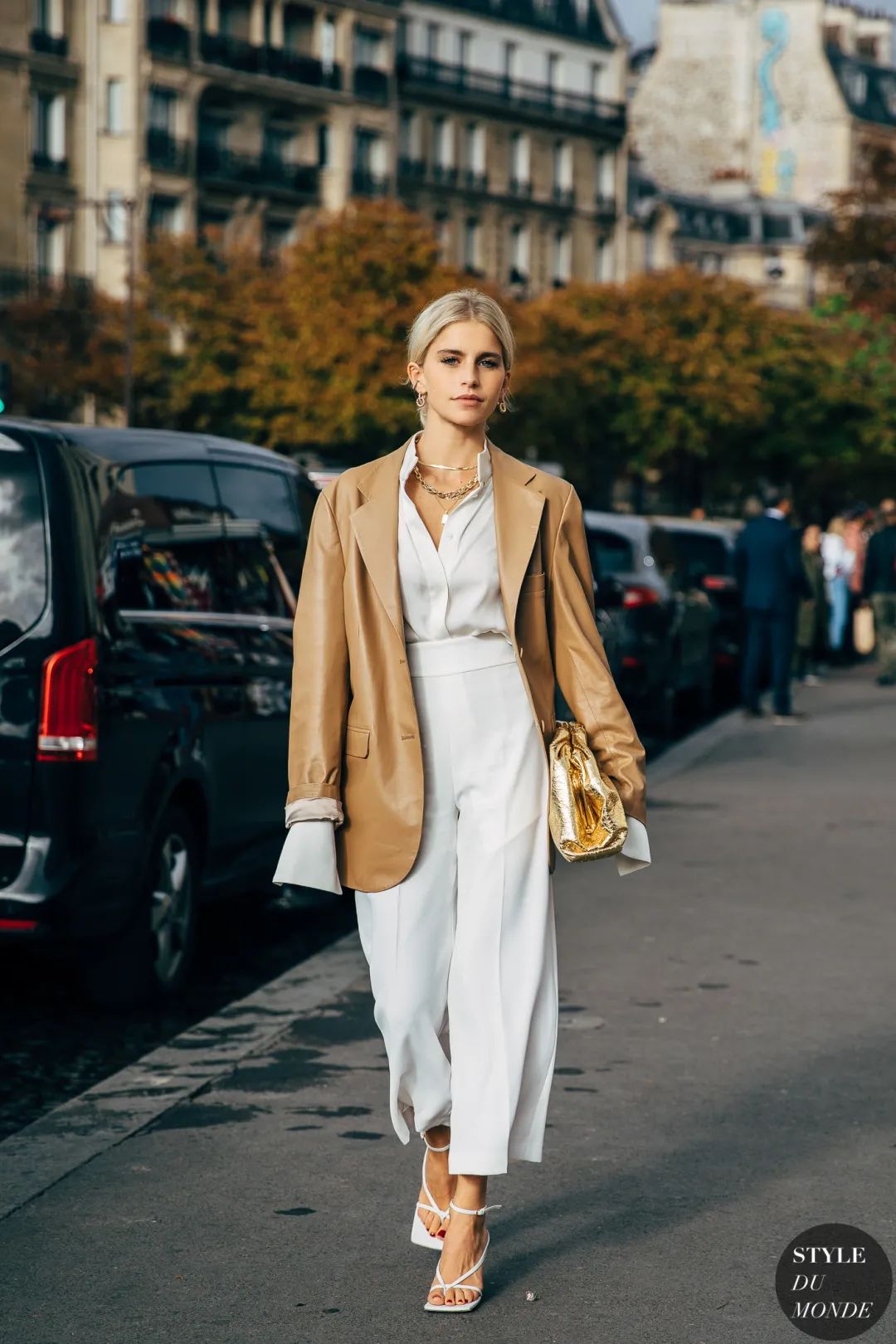 虽然现在是衬衫霸屏的时候,但是白衬衫体积轻薄,单穿肯定太冷又单调,不如和其他单品做配搭,不会增加额外的厚重感,多少还能合理增加一些温度,同时又能增加叠搭功力。