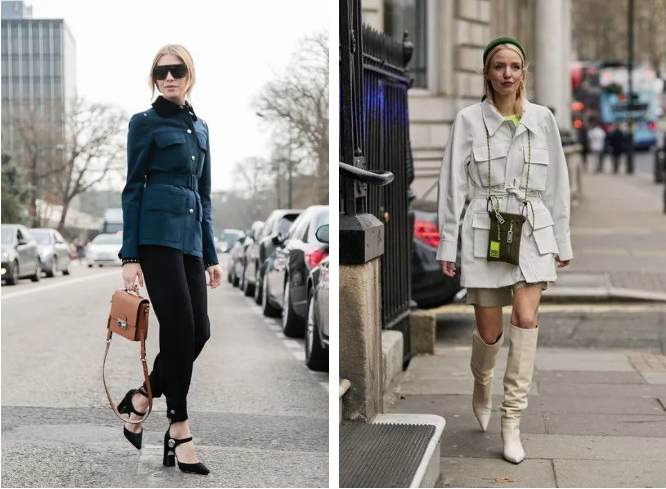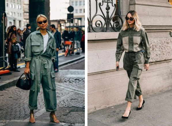 胸前还有两个大口袋、有的带腰带,自带工装风的帅气感。近期杂志上的曝光率太高了。