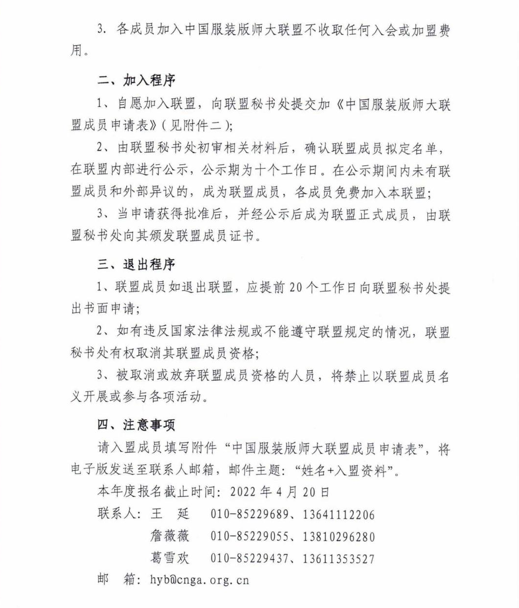 3. 各成员加入中国服装版师大联盟不收取任何入会或加盟费用。