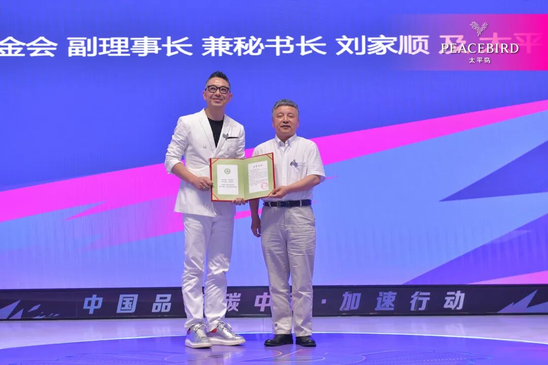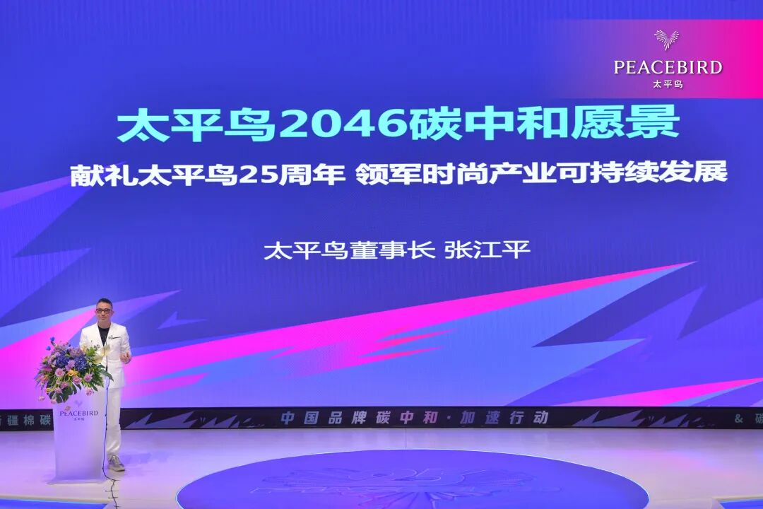 2021年6月1日,太平鸟在总部开启了“中国品牌碳中和·加速行动”发布会,公布企业碳中和愿景并正式启动碳中和行动。作为战略行动的第一步,太平鸟在发布会上展示了其第一件采用100%新疆棉,全供应链过程碳足迹测评产品——太平鸟25周年纪念T恤。在每件T恤上都有一个带有二维码的吊牌,实时可查看碳足迹信息。同时,太平鸟向中国绿色碳汇基金会时尚气候创新专项基金捐赠200万元,支持中国纺织行业碳减排目标和路线图研究,为中国品牌提升适应力赋能。