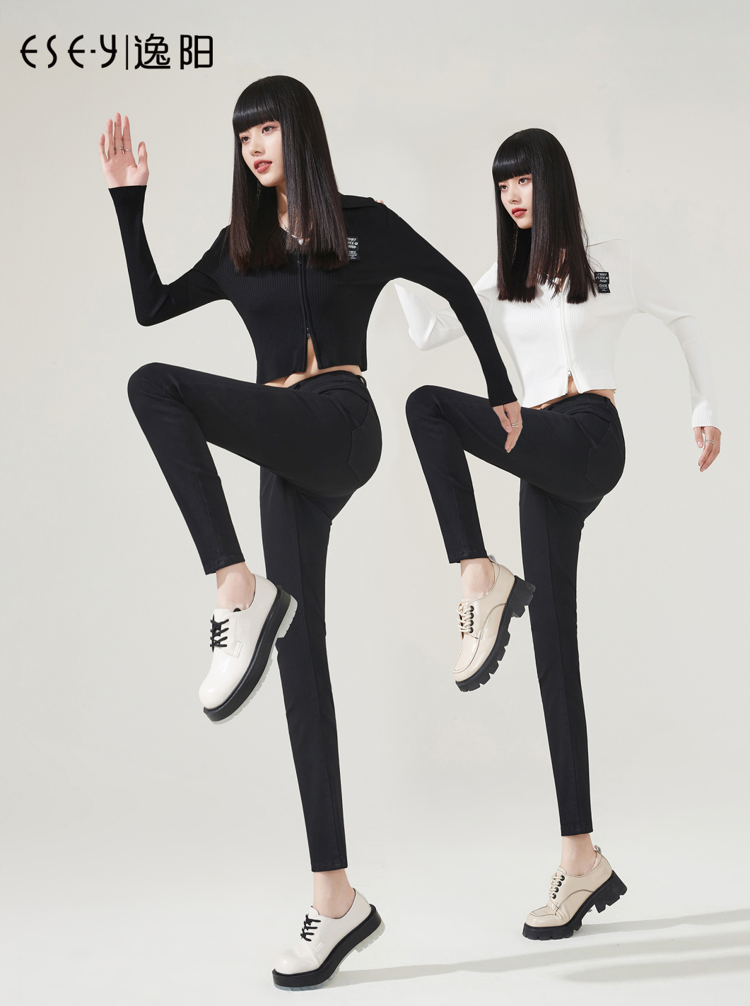 逸阳采用活性染技术,帮你摆脱黑色牛仔裤裤子掉色严重的烦恼。高弹力纱线,动作再大也不怕,让你追求时尚又不失个性。迎合健康环保理念设计研发而成,避免色素进入,不易染腿、不易污染水源,乐享健康生活。铅笔版型与腰部环绕式设计,轻松穿出好身材。