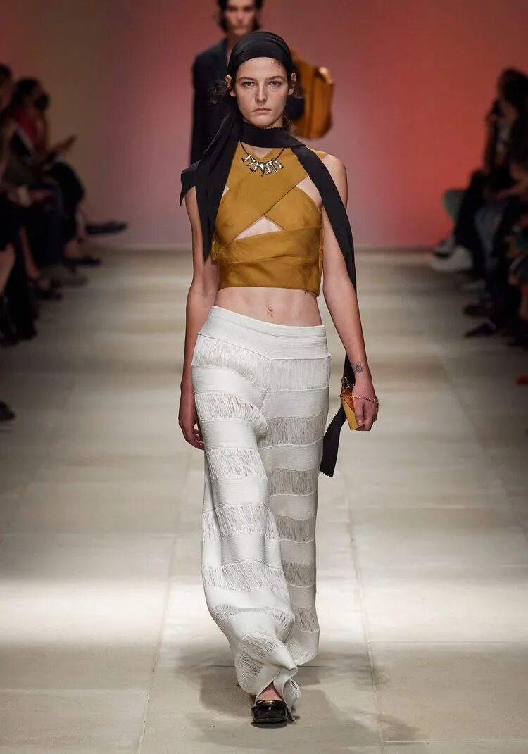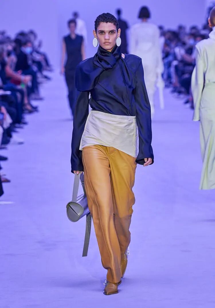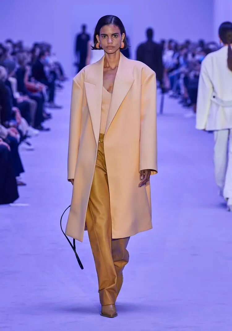 Salvatore Ferragamo将咖喱微上衣与白色阔腿裤相结合,或将咖喱西裤与深蓝色上衣相结合。正如Jil Sander所展示 的,Curry 总是与黑色和白色搭配,并且特别成功地与柔和的黄色和橙色色调相结合。