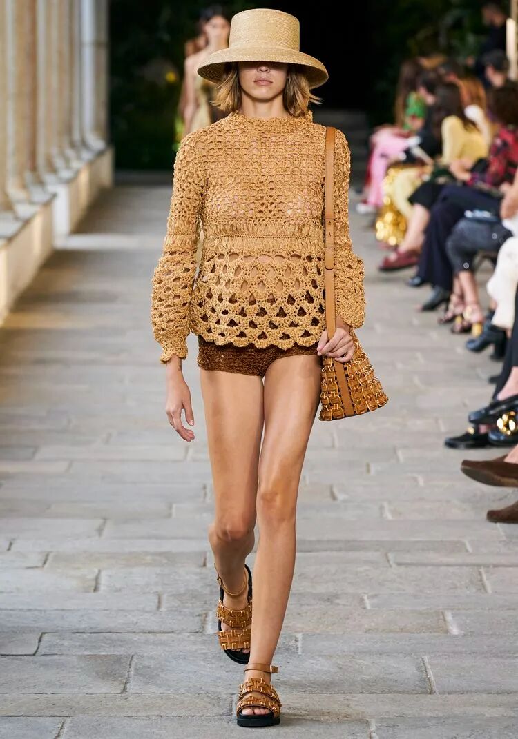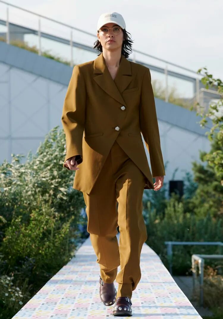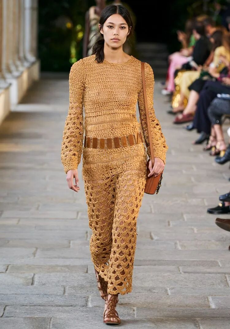 如果你喜欢火辣的装扮,你可以选择穿一身的Curry。例如,阿尔伯塔·费雷蒂(Alberta Ferretti) 展示了一件带有明显波西米亚风情的咖喱色钩针针织连衣裙 ,而Ganni 则将一件雕塑套装完全浸入了咖喱中。Proenza Schouler为经典风衣选择了棕色咖喱色调,并与黑色配饰相结合。在Lacoste,咖喱是运动网球造型最重要的成分,搭配色彩缤纷的配饰看起来特别精致。