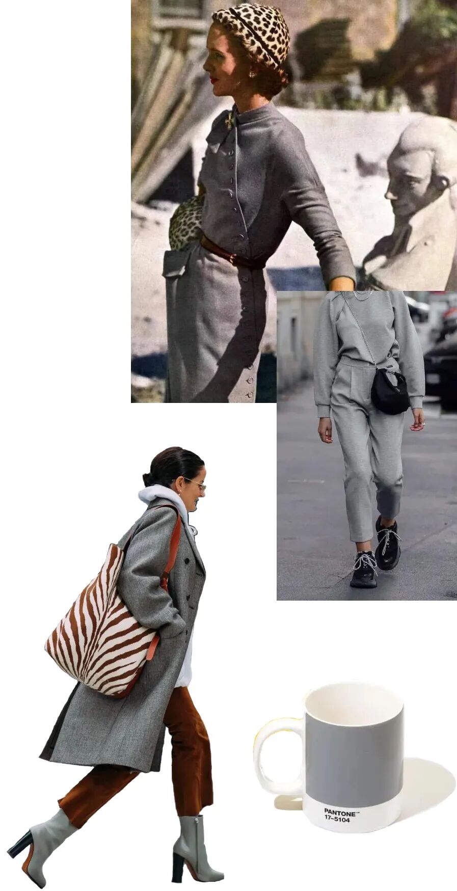 灰色常以平静大气示人,在时尚穿搭中,有着包容一切的力量,可作为百搭色存在。
