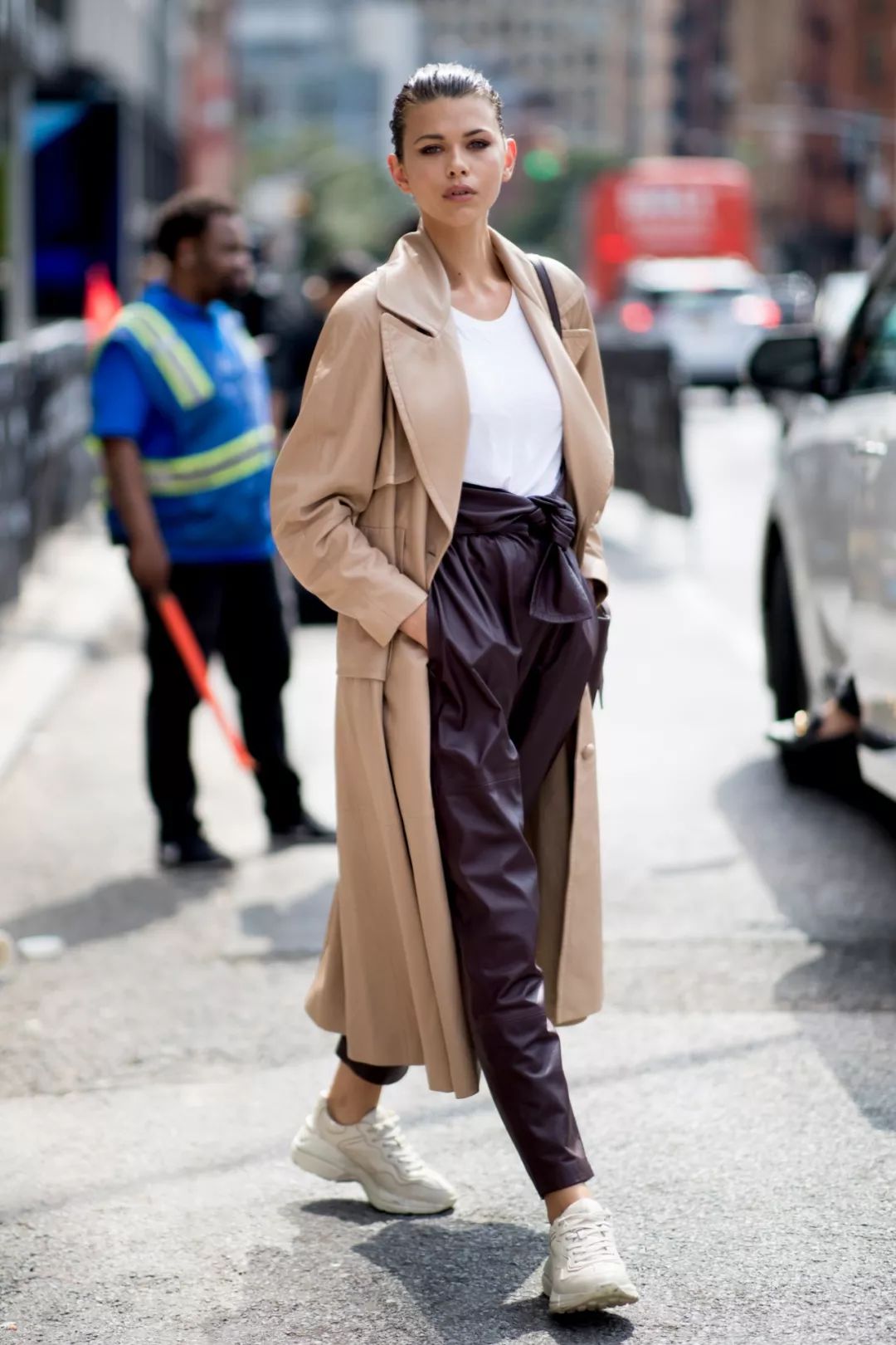 不喜欢穿高跟鞋,搭配一双运动鞋也很有味道,很有运动气息。