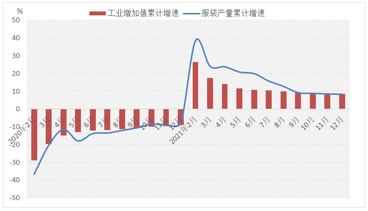 根据国家统计局数据,2021年1-12月,我国服装行业固定资产投资完成额同比增长4.1%,增速比上年同期提高36个百分点,比1-11月提高2.6个百分点,仍低于纺织业和制造业整体水平7.8和9.4个百分点。与2019年相比,服装行业固定资产投资完成额两年平均下降15.8%,尚未恢复至疫情前水平。