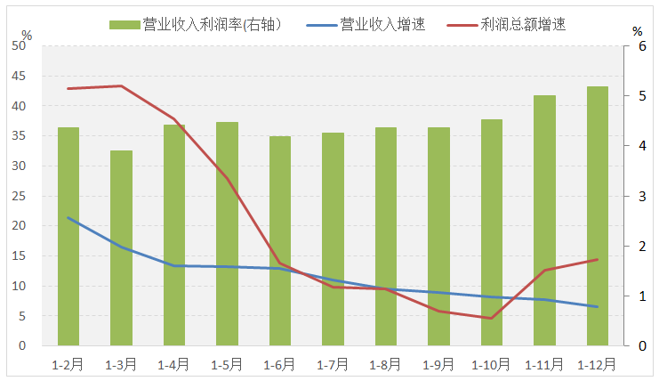 利润增速持续加快,盈利能力小幅提升。根据国家统计局数据,1-12月,我国服装行业规模以上(年主营业务收入2000万元及以上)企业12653家,实现营业收入14823.36亿元,同比增长6.51%;利润总额767.82亿元,同比增长14.41%,增速比1-11月加快1.77个百分点;营业收入利润率为5.18%,比上年同期提高0.36个百分点。行业运行质量有所改善,但是压力依然较大。1-12月,服装行业规模以上企业总资产周转率和应收票据及应收账款周转率分别为1.29次/年和8.08次/年,同比分别加快3.04%和3.01%;而营业成本同比增长6.38%,三费比例比上年同期提高0.01个百分点,产成品周转率同比下降2.28%。