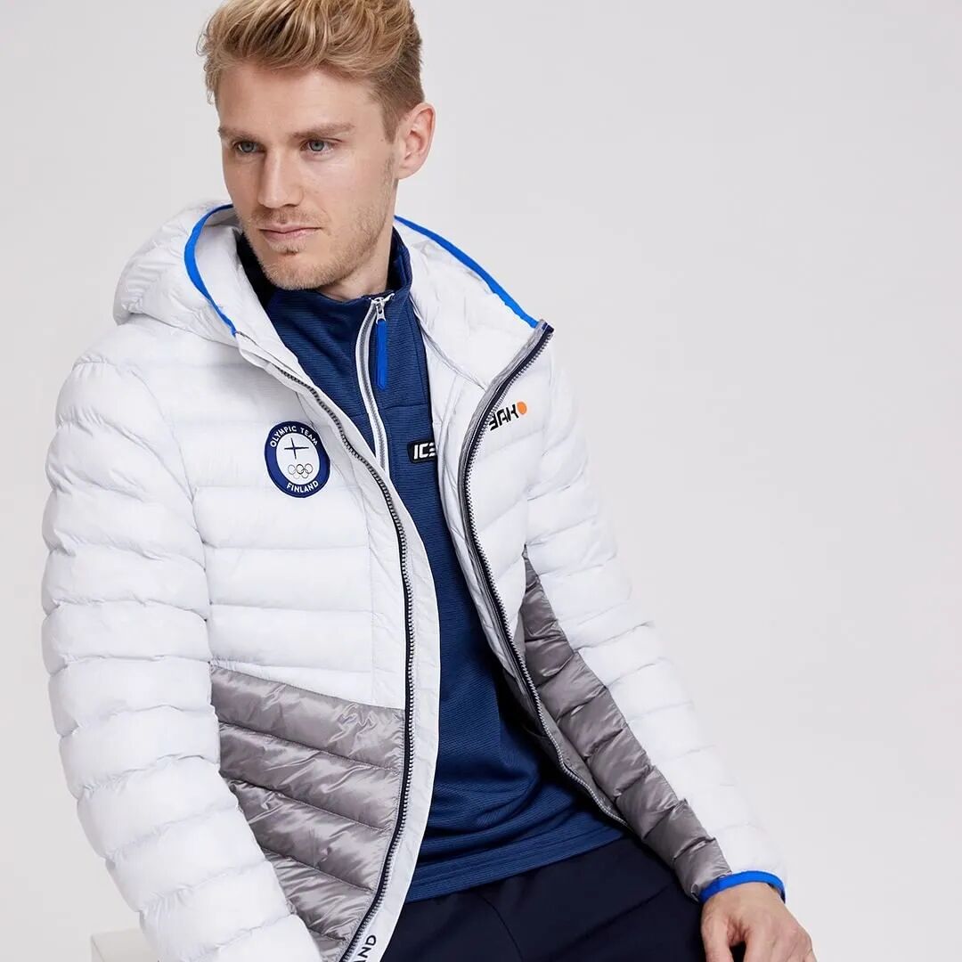 因为今年是中国的虎年,而「虎」在德国文化中以黑色作为象征,所以本次服装系列以黑色为主调;荧光绿的明快搭配则代表着乐观主义、勇气与力量。今年的北京冬奥会上,Armani仅仅是使用了中规中矩的蓝黑配色,和咱们中学时期穿的校服不能说是毫无关系,只能说是一模一样!和去年东京奥运会上意大利代表团显眼的白色出场服差距太大,今年的Armani似乎没有发挥出真正的设计实力呀!ICEPEAK是源自芬兰,拥有百年历史的户外运动品牌。在国内,该品牌以滑雪运动装备而为滑雪爱好者所熟知,甚至还赞助了包括自由式滑雪U型场地国家队等6支国字号滑雪队。此次北京冬奥会是ICEPEAK继东京奥运会后,再次为芬兰奥运代表团打造官方服装。服装以冷灰色及芬兰经典色白色和蓝色为主色调。甄选优质羊毛面料和温暖的羊羔毛,时髦性与保暖性兼具。