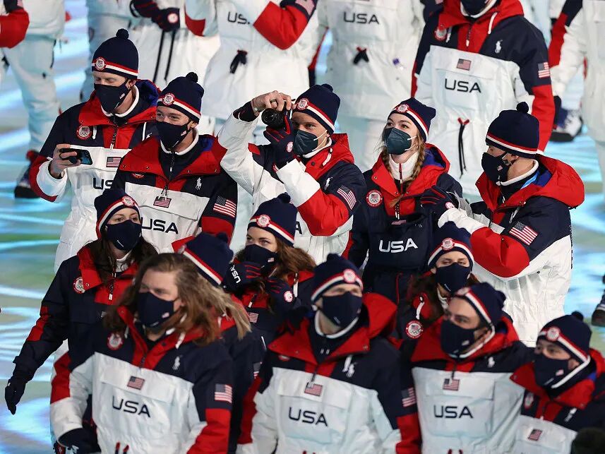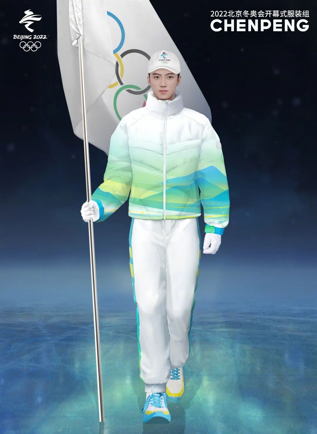 奥林匹克会旗护旗手服装由中国独立设计师——FENGCHENWANG王逢陈设计,她将运动感和功能主义融合,兼具实用性和设计感,通过当代的设计语言表达国之韵律。主题曲舞蹈《放飞和平鸽》里 155 位来自爱乐团主场儿童的服装由中国独立设计师——丁洁设计,主色调以青花瓷白和青两色组成,服装图案融入中国结等迹象元素。主唱儿童服装设计中,丁洁将️《蔚县剪纸》的地域及图案特色点缀在冬奥滑雪画面中,丁洁在征得河北蔚县传承人陈林的剪纸作品版权同意后,以此为设计灵感,凝练出生机勃勃的冰雪运动形态。自2008年北京奥运会以来,Ralph Lauren一直是美国奥委会的官方合作服装品牌。本次北京冬奥会,Ralph Lauren十分用心地为设计了不同场景的服装,其中开幕式出场服装方面男女有别,男运动员将身着饰有红蓝色块的白色夹克,女运动员们的上装则以海军蓝色为主调,他们都将佩戴同色系的针织帽和手套、以及特制的口罩参加开幕仪式。值得一提的是,美国队的开幕式服装搭载了Ralph Lauren最为尖端的「智能保温」(Intelligent Insulation)科技,通过在不使用外部供电的情况下扩展并形成一层绝缘层来适应较冷的温度,单件服装可以跨越三个季节,从室内环境无缝过渡到室外环境。单板滑雪运动员Jamie Anderson、Shaun White