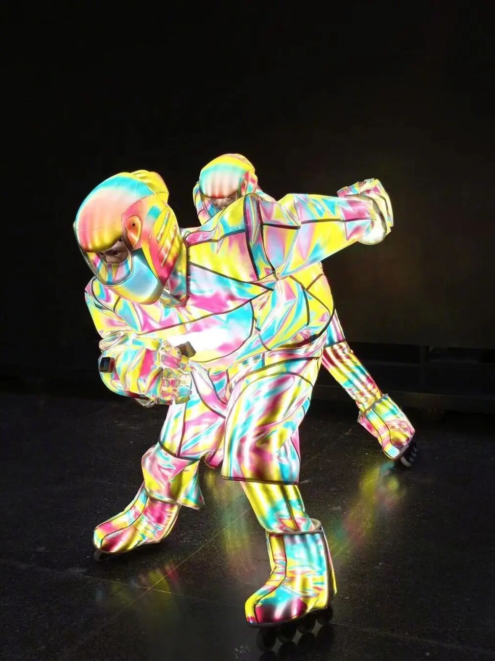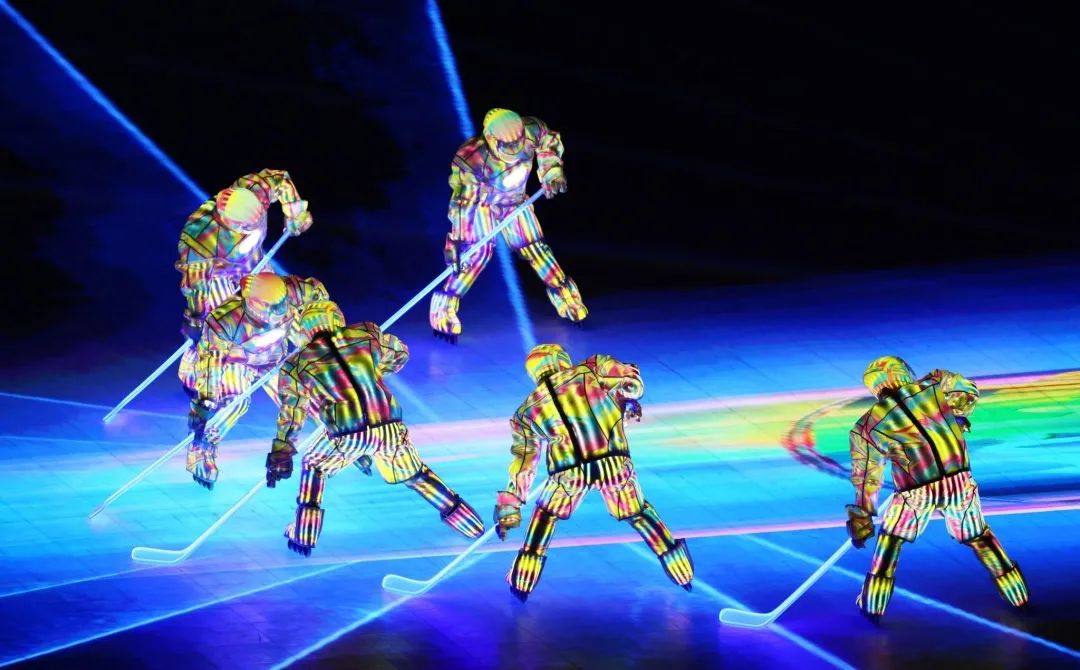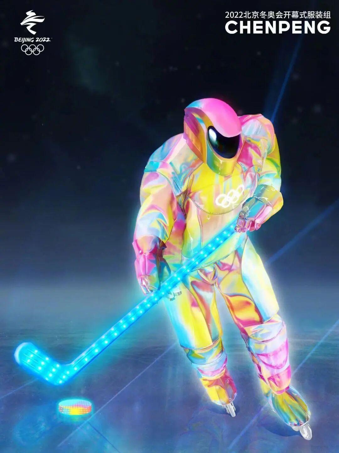 经冬奥制服装备设计主创,民族服饰博物馆馆长、北京服装学院教授贺阳老师介绍,2022年北京冬奥会制服设计视觉来源于中国传统山水画与冬奥会核心图形中的“赛区山形”,体现了冬奥会赛时的自然景观与中国山水画的美学特征。工作人员制服,颜色选用沉稳的墨色和跃动的霞光红,展现的是工作人员的实干和热情精神。技术官员制服主色调则选择灰色,源自于北京冬奥色彩系统中的“长城灰“,彰显的是技术官员的客观公正”。志愿者制服,服装中的“天霁蓝” 来源中国传统陶瓷珍品霁蓝釉的颜色,蓝色是冰雪运动的色彩,活泼生动,十分适合具有青春活力的志愿者。除了礼仪服饰和比赛队服,冬奥开幕式上还有三位中国新生代独立设计师们的作品!不得不说高科技纺织和时尚设计助力中国冬奥开幕式惊艳世界,这套发光的冰球服实在是太酷炫了!服装既有辨识度又有中国特色,这套散发流光溢彩之美的服装正是出自中国独立设计师——CHENPENG陈鹏之手!在本届北京冬奥会开幕式中陈鹏负责了超过50%的表演服装设计工作,他设计的服装在保留剪纸、中国结、山水画、冰灯这些传统元素的同时,更加凸显年轻化与时尚度。以《千里江山图》为灵感的举旗员运动套装、炫彩的发光冰球服、可爱的和平鸽童装、倒计时环节简洁干净的绿色工装连体服、洋溢着热情的速滑服设计都出自陈鹏之手。以时尚之名,中国设计师向世界展示当下中国的文化自信!