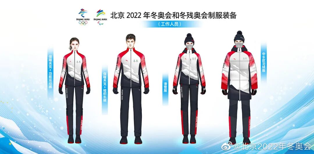 挺阔的大衣,搭配毡帽和国旗颜色的围巾,大红的“战袍”直接引爆了鸟巢的火热气氛。既然是冬奥会,那么比赛选手们的队服是必不可少的。本次ANTA安踏作为中国奥委会官方合作伙伴,冬奥15赛项12支中国队都将穿着安踏提供的比赛队服亮相赛场!冬奥会的用心你以为就到此为止了吗?2022年北京冬奥会的工作制服设计也是大有讲究,专门设计有工作人员服装、技术官员服装与志愿者设计了3套服装。