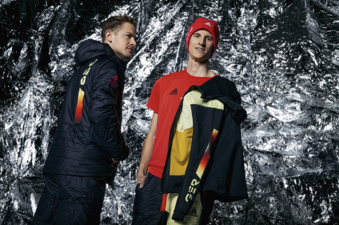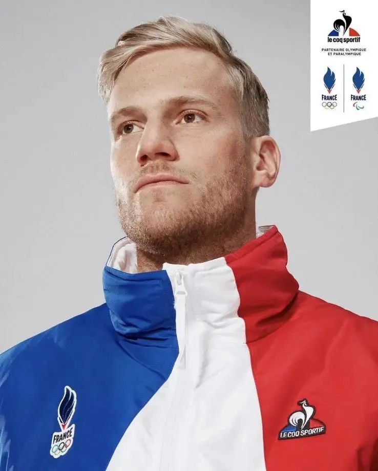The North Face是韩国奥委会的合作伙伴,本次为韩国代表团推出了三款官方运动服装:一套白色领奖服延续了2020东京奥运会领奖服的设计,韩国国旗的红蓝两色设计为象征速度与力量的条纹点缀其上;一款红黑配色的羽绒服则非常普通,仅仅是加上了韩国奥委会LOGO;最右这套连帽冲锋衣的设计,将韩国的山川地貌绘制在上面,颜值尚可。「北欧劲旅」瑞典在历届冬奥金牌总榜排名第8名,由瑞士本土新锐运动品牌 Ochsner Sport 操刀的代表团队服将国旗配色用在了服装上。值得一提的是,这是瑞士奥运代表团第一次身着本土品牌参加冬奥会。Ochsner Sport所设计的瑞士代表团服装以不同饱和度、代表瑞士的红色为主色调,其中十分引人注目的是一款防风外套,将瑞士国旗上的白色十字变形为竖条点缀于正中央,十分有型。Le Coq Sportif,俗称「法国公鸡」。这是一个源自法国且拥有百年历史的时尚运动品牌,作为法国奥委会的合作伙伴,此次以法国国旗红白蓝三色为基底,设计了2022法国冬奥代表团的官方服装。上衣为运动外套,红白蓝三色汇聚于领口,大色块拼接显得非常显眼。更有意思的是胸前的LOGO,分别是Le Coq Sportif的「雄鸡」,以及法国奥委会的全新「圣火雄鸡」,两只「高卢雄鸡」分处左右,可谓是相得益彰。在全球疫情的阴影尚未退却的艰难时期,Adidas携手德国冬奥代表团带来了「叛逆的乐观主义」(Rebellious Optimism),他们以此为主题,设计了本届冬奥会的代表团服装,包括红色打底长短袖T恤、以荧光绿和黄色色块拼接的黑色运动外套、羽绒夹克和中长款羽绒服、冷帽等单品。