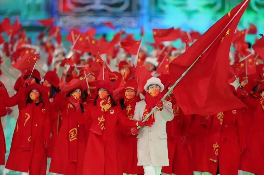 作为东道主,本届冬奥会中国队备受世界瞩目,在歌唱祖国的乐曲声中,「火红」的中国队来了。
