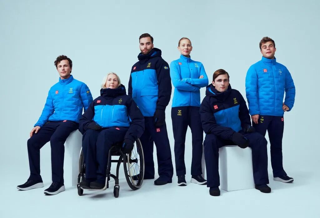 瑞典携手简约的代表——优衣库,这对气质相当的组合。事实上,优衣库于2018年就已进军瑞典,2019年开始与瑞典奥委会合作,为瑞典的专业运动员和运动队开发LifeWear运动服装系列。瑞典自然环境优美,可持续发展处于世界领先水平,这也与LifeWear的环保生活理念非常契合,融入了大量可回收材料和环保科技,设计风格简洁明快的奥运会服装。本届北京冬奥会,优衣库为瑞典代表团设计的官方服装延续了简约风格,开幕式服装为纯蓝色和蓝黑拼接两款羽绒服搭配下装黑色运动长裤,毕竟蓝色是瑞典的代表性颜色(参考宜家)。包括其他一些滑雪队服也采用简洁的纯色搭配,「优衣库」了。