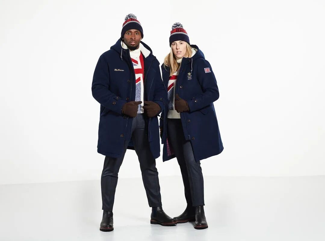 大家对Ben Sherman这个小众的品牌可能并不熟悉,但在英国本国,Ben Sherman可是1960年代Mod风格的祖师级品牌!几乎影响到其后的所有英国品牌。本届冬奥会,Ben Sherman为英国代表团设计的开闭幕式服装亦带有浓厚的英伦风格。上装包括内衬羊绒的深蓝色毛呢大衣和英国「米字旗」图案毛衣,充分保证保暖效果的同时绅士味道十足;下装为深灰色休闲西裤,搭配上皮鞋、冷帽、围巾、手套等单品与配件,真的有哈利波特电影中学生们走出来的感觉!滑雪运动员Katie Summerhayes展示闭幕式服装